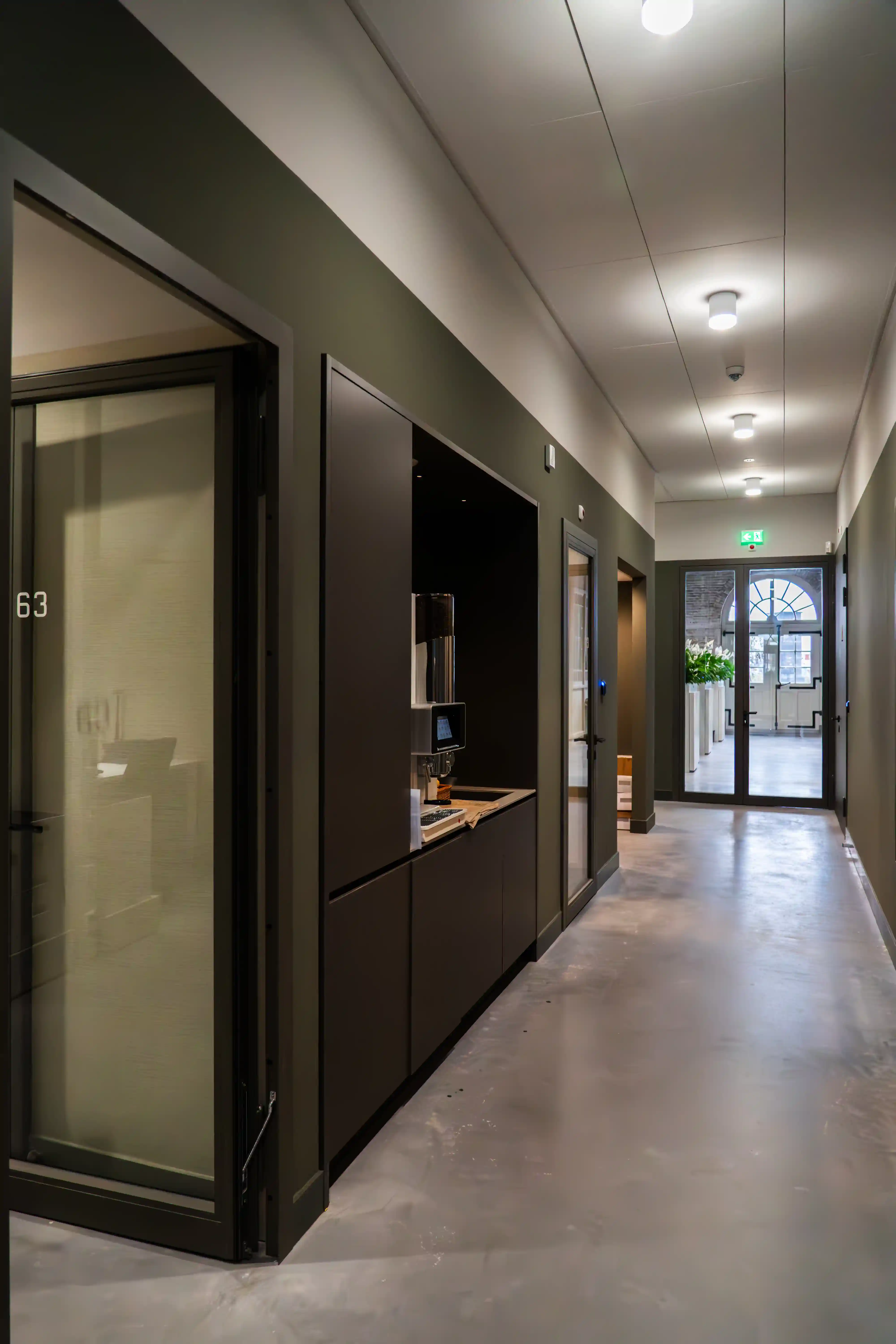 In Gebouw 72, ooit een zeilmakerij uit 1949, heeft Issos het interieur naar een hoger niveau getild. De burgemeesterskamer kreeg een nieuwe look, en de koffiecorners op elke verdieping stralen nu warmte en comfort uit. Een bijzondere vermelding verdienen de akoestische wandpanelen, die zijn ontworpen in lijn met de originele gevel van het gebouw. Bovendien integreerde Issos 268 lockers naadloos met de wandbetimmering, waardoor ze praktisch en esthetisch zijn in hun functie.