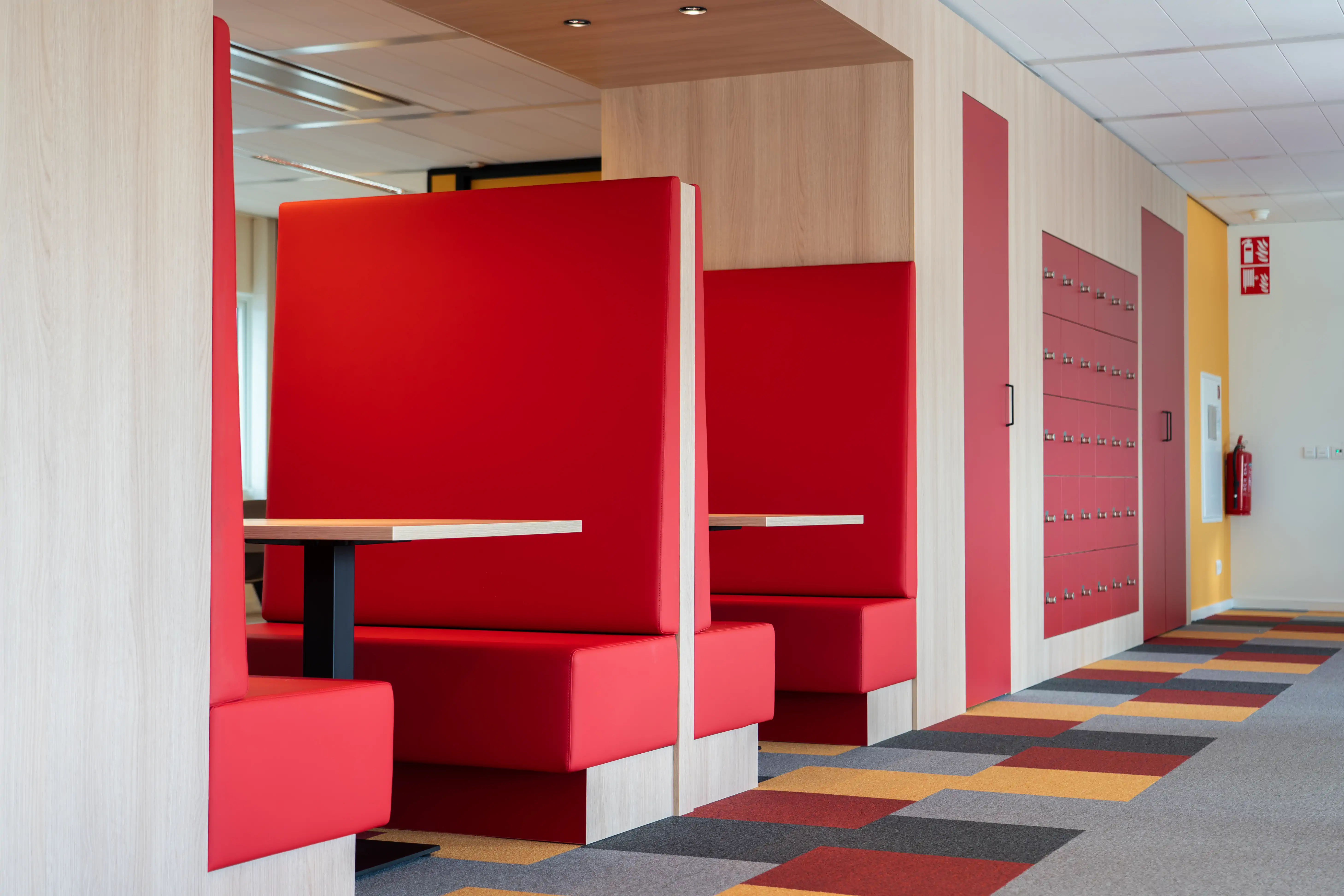 In het nieuwe kantoor van Stoffenmanager in Amstelveen, hebben wij, in samenwerking met Jolanda de Boon van Joolsdesign Interieurprojecten, een omgeving gecreëerd waar innovatie en comfort samenkomen. Het middelpunt is een multifunctioneel meubelstuk dat zowel functioneel als esthetisch dient, met een integratie van pantry, kluisjes en sfeervolle treinbankjes.