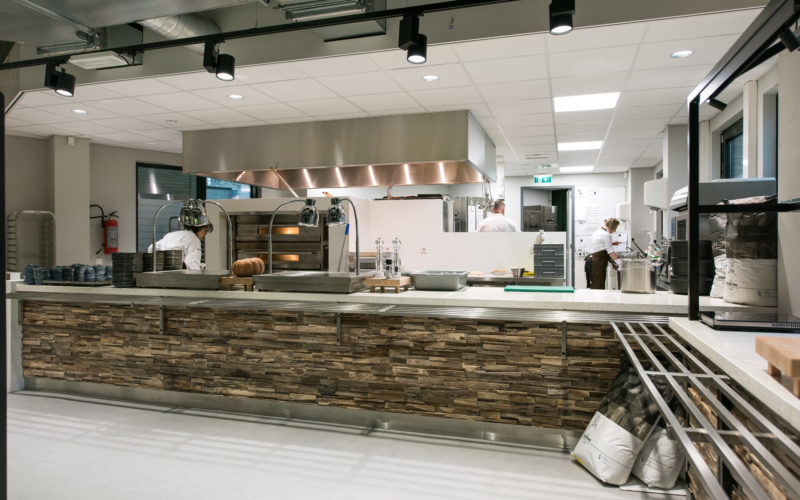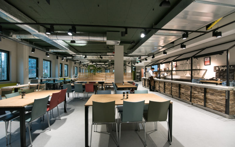 Eveneens op de parterre hebben wij voor het bedrijfsrestaurant een professionele bedrijfskeuken geplaatst en ingericht. Wij hebben dit gerealiseerd in het kader van de overstap van ABN AMRO en haar cateraar naar een duurzaam cateringconcept.