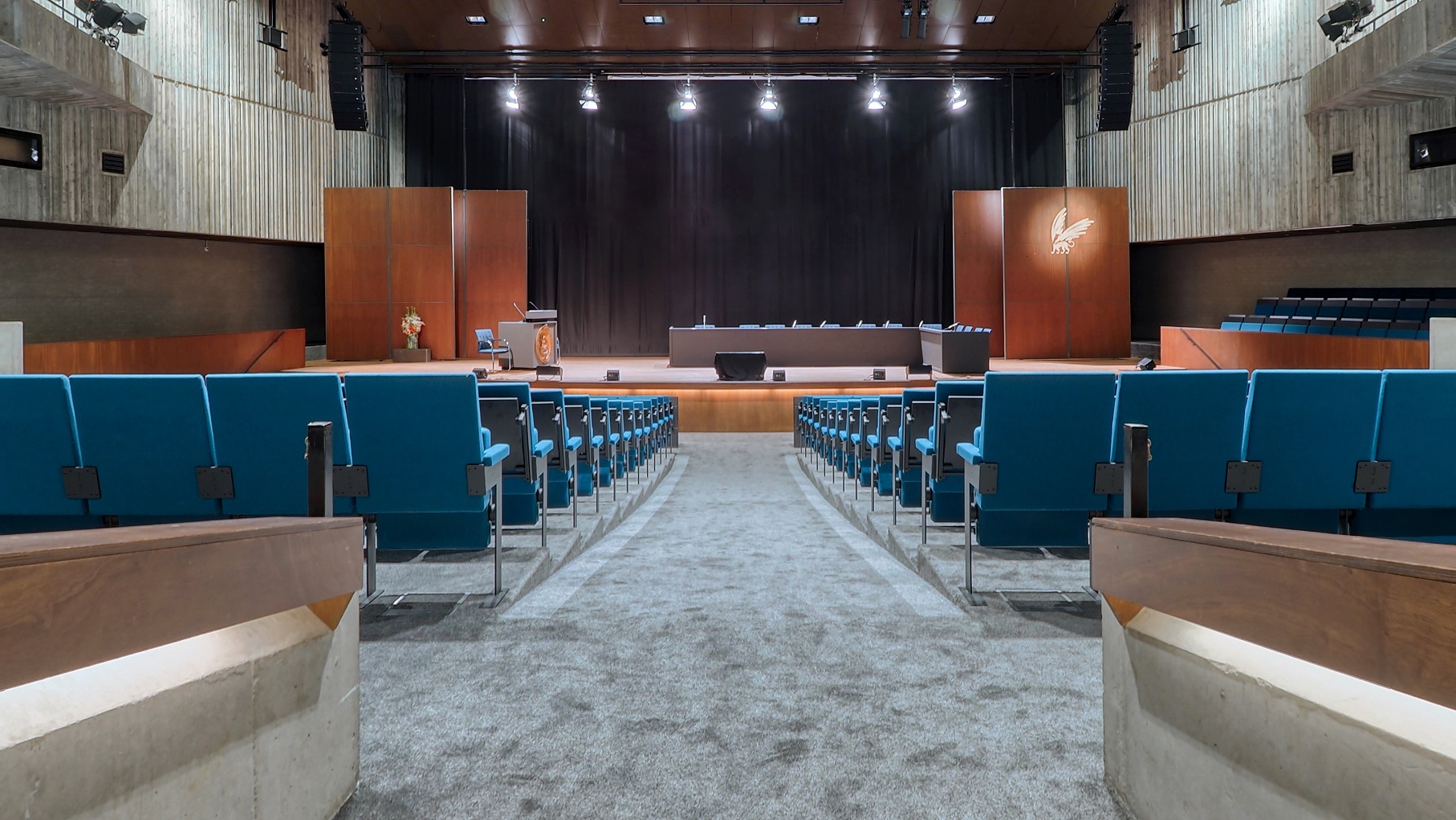 The Aula of the Vrije Universiteit Amsterdam underwent a major renovation last summer. The goal was a sustainable and flexible room that is also suitable for teaching and attending education.