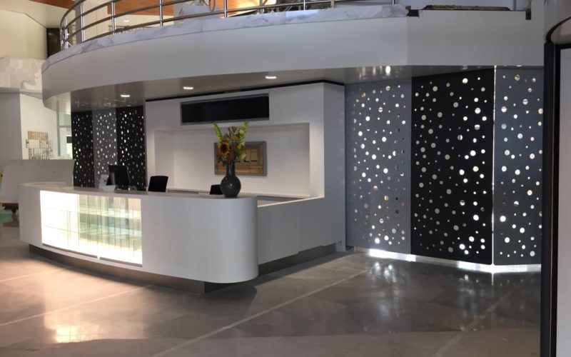 Onlangs hebben wij de centrale hal van het ABN AMRO kantoor aan de Foppingadreef in Amsterdam Zuidoost heringericht. Dit kantoor is de op één na grootste vestiging van ABN AMRO.