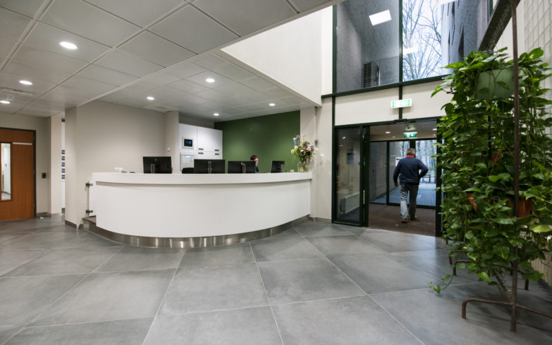 Onlangs hebben wij de centrale hal van het ABN AMRO kantoor aan de Foppingadreef in Amsterdam Zuidoost heringericht. Dit kantoor is de op één na grootste vestiging van ABN AMRO.